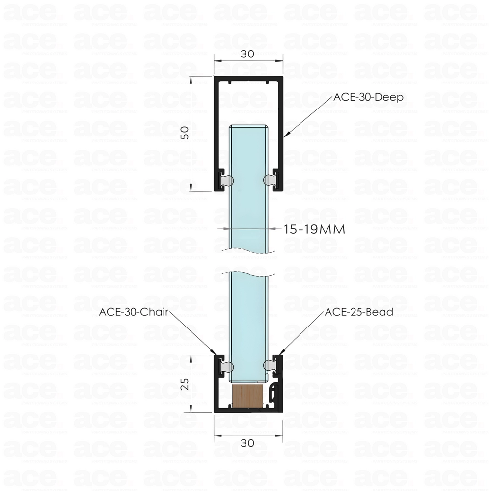 Fitted with a pre-inserted Q-Lon acoustic seal, it is suitable for glass thicknesses from 15 mm to 19 mm, offering excellent sound insulation performance. In line with all components of the 30 mm aluminium frame system, the 30-Deep section is supplied in 3000 mm lengths and is fully compatible with the complete 30 mm profile range, ensuring seamless integration with the 30-2P aluminium channel.