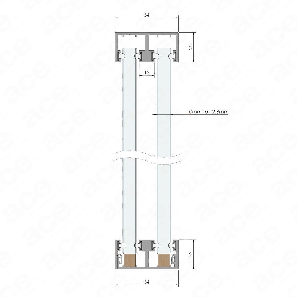 With a profile size of 54mm (W) x 25mm (H), the 54-1P includes a pre-inserted Q-Lon acoustic seal, ensuring excellent sound insulation and secure placement of 10mm/10.8mm or 12mm/12.8mm glass panels.
