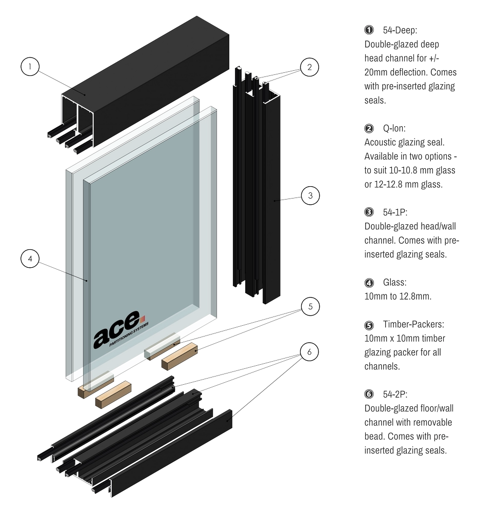 Fully compatible with all components in the 54mm system, the 54-Deep aluminium channel ensures a secure and durable installation, making it ideal for both commercial and residential double-glazed applications.